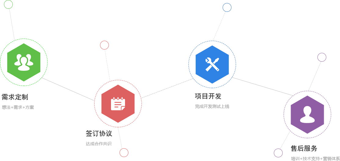 提供開發(fā)需求 -> 達成合作協(xié)議 -> 完成需求開發(fā) -> 售后服務